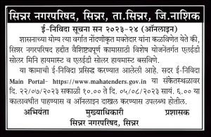 सिन्नर नगरपरिषद सिन्नर, ता. सिन्नर, जि. नाशिक (जाहिरात प्रसिद्ध)