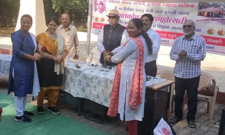 तसेच श्रीकांत सोनवणे प्रमुख पाहुणे म्हणून उपस्थित होते. त्यांनी स्वातंत्र सैनिक साने गुरुजी बद्दल विशिष्ठ कथा-कादंबरी थोडक्यात माहिती दिली. विशेष म्हणजे २०२३ चा वर्षारंभ होत असताना हुतात्मा स्मारक नाशिक यांच्या वतीने विविध शाळांमध्ये निबंध स्पर्धा आयोजित करून योग्य ते मार्गदर्शन व विशेष लक्ष वेधत असे रहणुमा उर्दू शाळेमधील विद्यार्थिनी यांनी ” खरा तो एकची धर्म जगाला प्रेम अर्पावे ” या कविता खऱ्या अर्थाने आज ऐकून आत्मसात झाली. साने गुरुजी आणि मराठी भाषेतील निबंध बक्षीस सोहळा आयोजित केला त्याबद्दल उत्सुकता आणि अभिमानास्पद अभिनंदन केले..