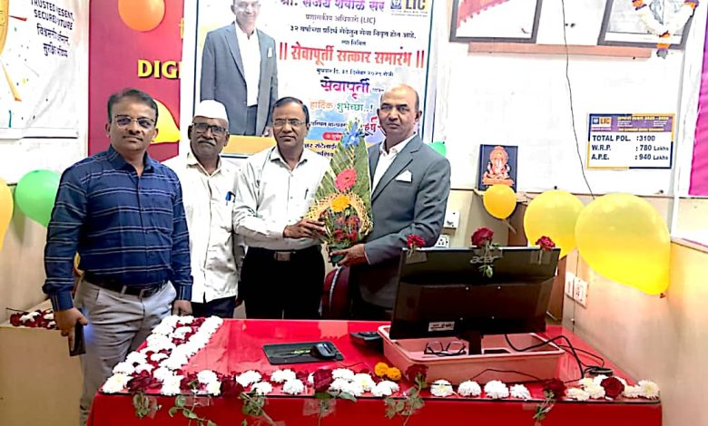 समाजसेवा, प्रशासन व सार्वजनिक हितासाठी अनेक वर्षे निष्ठेने कार्य करणाऱ्या कर्मचाऱ्यांच्या योगदानाचा गौरव करण्यासाठी आयोजित सेवा पूर्ती सत्कार सभारंभ सिन्नर येथे मोठ्या उत्साहात व सन्मानाच्या वातावरणात पार पडला. यावेळी भारतीय जीवन विमा महामंडळाचे प्रशासन अधिकारी श्री. संजय शेवाळे सर यांचा दीर्घ, प्रामाणिक व कर्तव्यनिष्ठ सेवेसाठी मान्यवरांच्या हस्ते गौरव करण्यात आला.